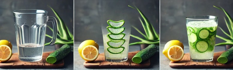 알로에 젤에 오이를 추가하면 디톡스 효과가 더욱 높아집니다. 오이의 수분 함량이 많아 몸의 수분 보충에도 좋습니다.