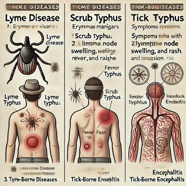 쯔쯔가무시병은 특정 종류의 진드기에 물려 감염되는 질병으로, 발열, 발진, 림프절 부종 등이 나타납니다. 이 병은 초기 치료가 중요하며, 방치하면 심각한 합병증으로 이어질 수 있습니다.