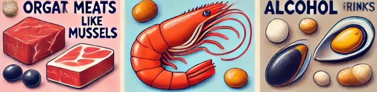 해산물 중에서도 퓨린이 많이 들어 있는 새우, 게, 조개, 홍합 같은 식품은 통풍 환자에게 해롭습니다. 이들 해산물은 요산 수치를 높이기 때문에 섭취를 제한하는 것이 좋습니다.