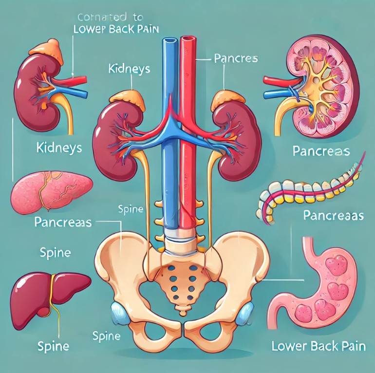허리통증은 때때로 내장 기관의 문제로 인해 발생할 수 있습니다. 예를 들어, 신장 결석이나 췌장염과 같은 내부 장기의 이상이 허리 부위로 통증을 전달할 수 있습니다. 이러한 경우 허리통증은 일반적인 근육통과는 달리 특정 자세나 움직임에 따라 변화하지 않으며, 관련된 내장 증상이 함께 나타날 수 있습니다.